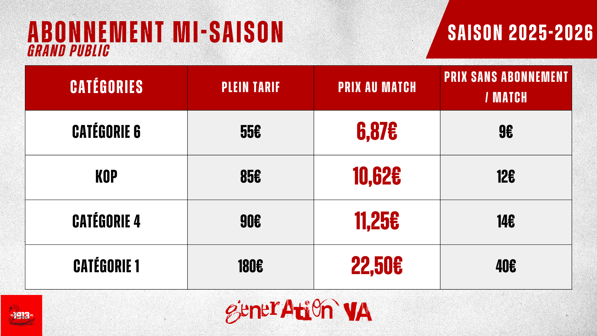 Match par match, le coût grimpe… mais avec l’abonnement mi-saison, vous payez jusqu’à deux fois moins cher chaque rencontre !